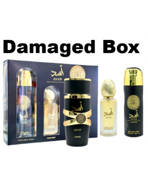 SET LATTAFA ASAD 3.3 EDP SP + DEOD 6.4 + 1.7 HAIRMIST (3PCS)-Damaged Box